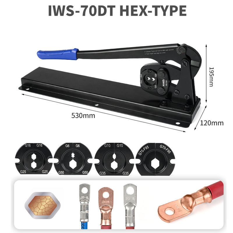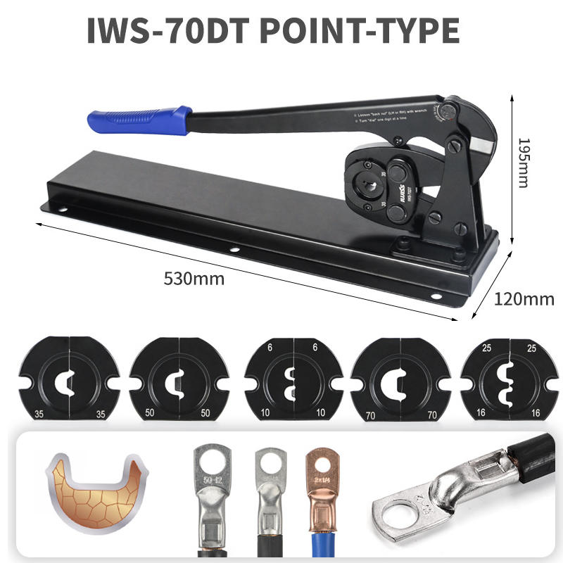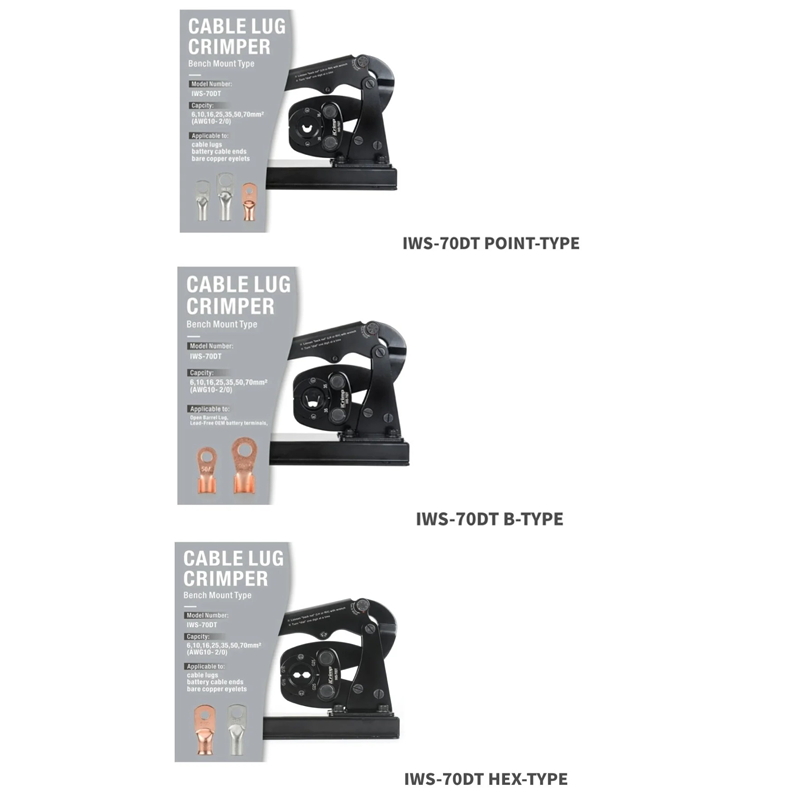 คีมย้ำหางปลาแบตเตอรี่ IWISS IWS-70DTแบบติดตั้งบนโต๊ะขนาด 6-70 mm² AWG 10-2/0